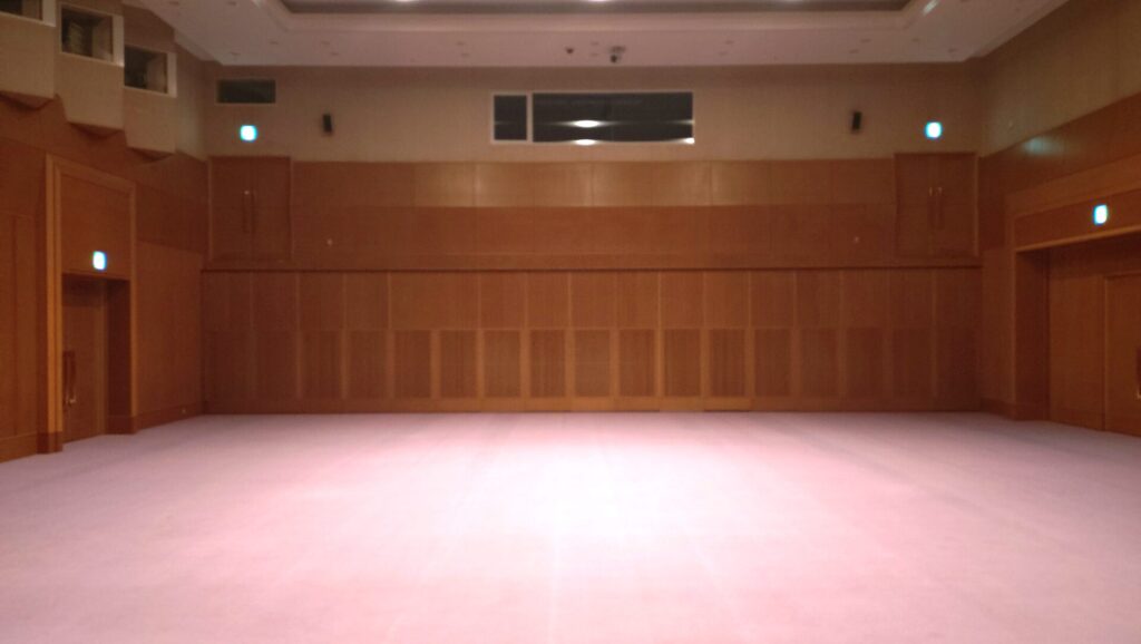 最大336席。席を収納すればフラットな床面に。ホワイエと併せて使えば、500人規模の対応が可能なスペースになります。講演会や総会、展示会、小規模な音楽会など様々な利用が可能です。